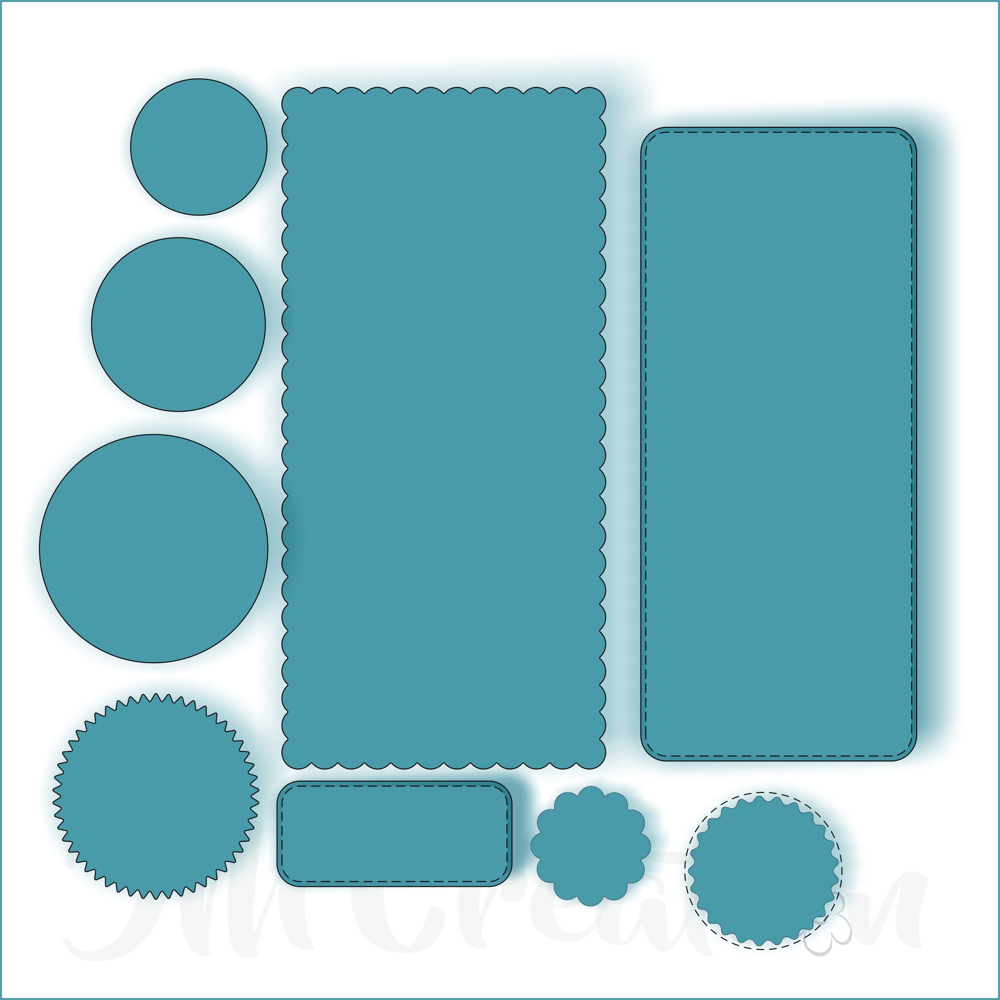 Größe Wellenrechteck 200*95mm - Stitched Rechteck groß 185*80mm - Stitched Rechteck klein 68*30mm - Kreise Durchmesser 40mm + 51mm + 67mm