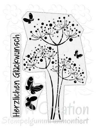 Punkteblüte mit Schmetterlingen - Stempelgummi 7,5x10,5cm