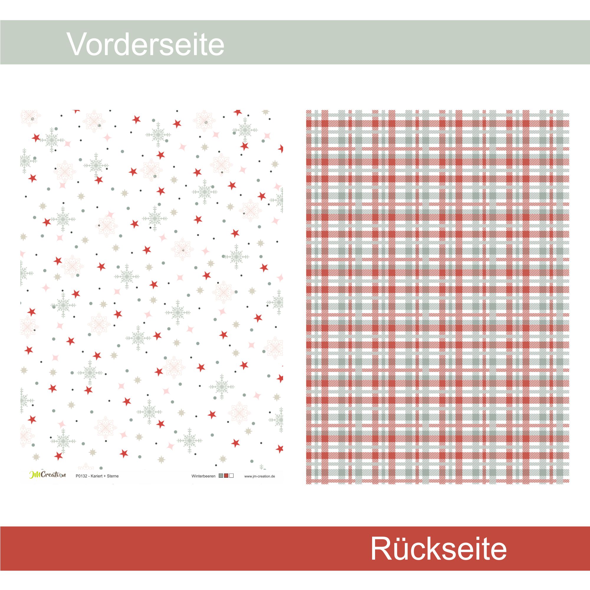 Kariert + Sterne - Serie Winterbeeren - Designpapier