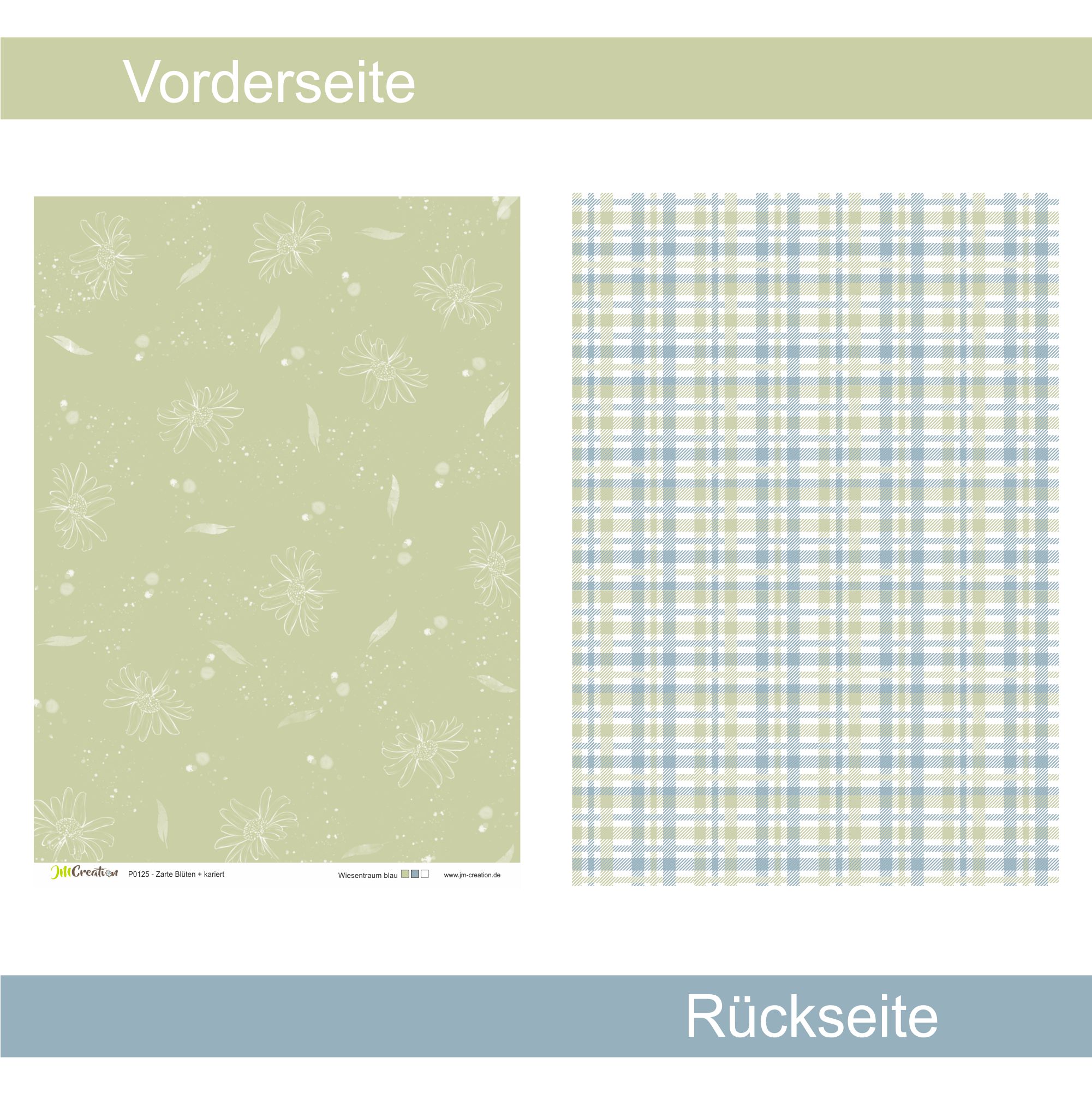 Zarte Blüten + kariert - Wiesentraum blau - Designpapier